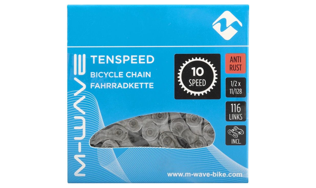 La chaine vélo M-Wave est compatible avec les transmissions Sram, Campagnolo et Shimano de 10 vitesses. Elle est adaptée pour de nombreuses pratiques, de la ville au VTT, en passant par la course, le trekking et le cyclo cross. De qualité, cette chaine est revêtue d’une couche anti rouille et anti corrosion.