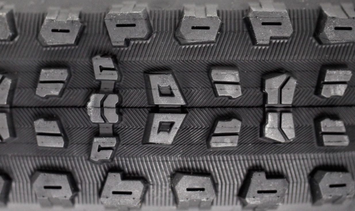 L’espace important avec les crampons latéraux améliore ses capacités de débourrage et rend le pneu plus polyvalent qu’il n’y paraît. Enfin, les crampons latéraux forment un véritable rail et mettent en confiance sur l’angle ! En conclusion, la chape striée améliore le grip de l’ensemble sans nuire au rendement.