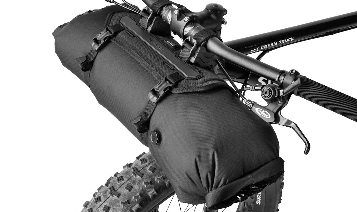 La sacoche de guidon Frontloader permet d’embarquer du matériel volumineux et léger à vélo. D’une capacité de 8 litres, elle est parfaitement adaptée pour le matériel de camping, un duvet, un matelas ou encore des vetêments de rechange.