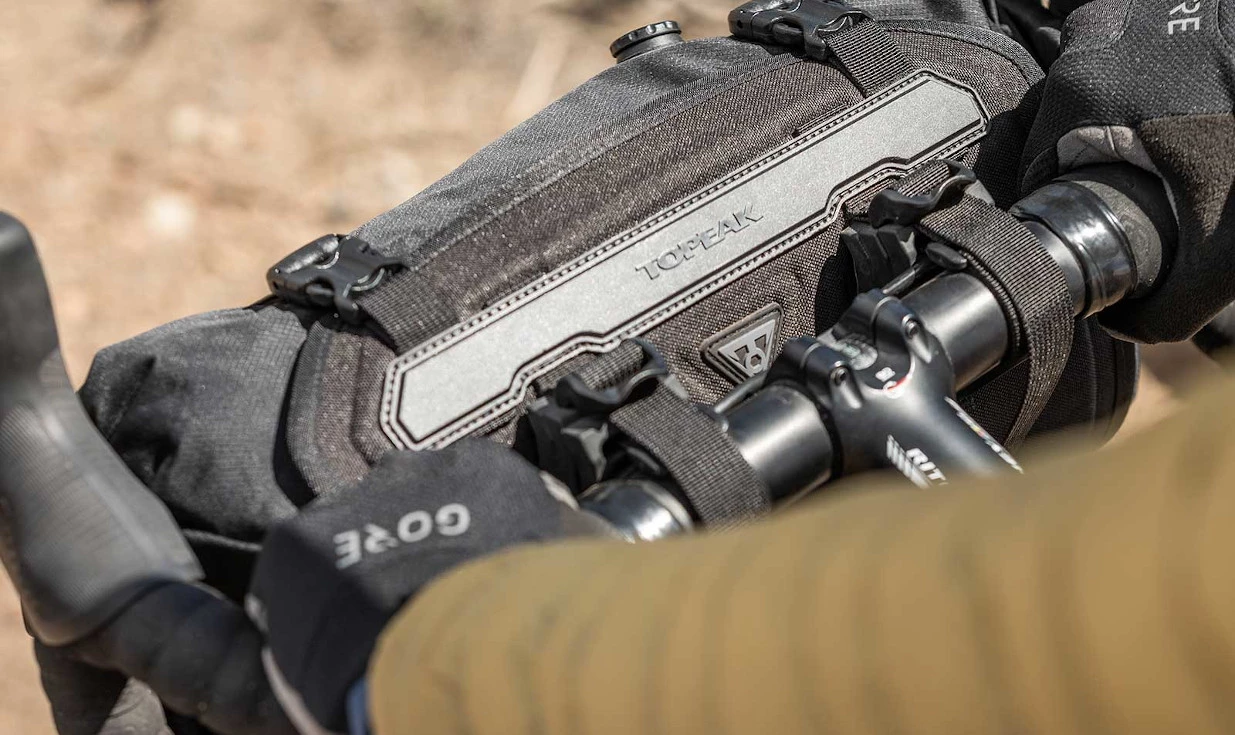 La Frontloader se fixe au cintre de façon rapide et fiable. Elle possède un renfort central assurant un excellent maintien de la sacoche, offrant également la possibilité d’ajouter d’autres accessoires via plusieurs boucles.